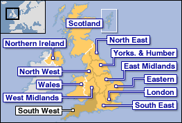 The South West retains all its seven seats at the 2004 elections, unlike most of the UK regions which are losing some of their MEPs due to the EU's enlargement. Geographically it stretches 260 miles from Lands End to the tiny village of Mickleton in North Gloucestershire. The Isles of Scilly are also included in this constituency, as is Gibraltar. It will be the first time that a British overseas territory has voted as part of a UK area.