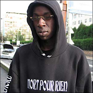 This sweatshirt says 'Dead - for nothing'. It's in memory of the dead boys, Bouna and Zyed.