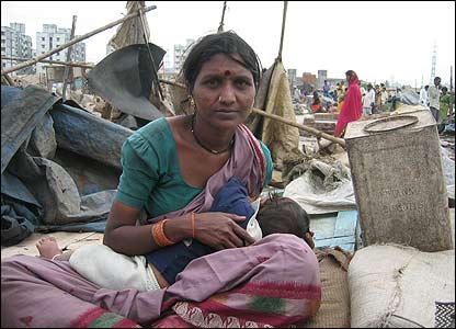 |  | � Ranjana Bhuivar I have been living in this slum with my husband and three children for the past five years. We came here from another slum in Chembur area, because my husband got some work with the municipality here. I don't know what to do. I can only keep squatting here till they remove us by force. Where can we go? We have no other home. |