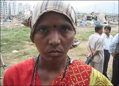 |  | Rita Devi� I clean garbage off the streets. I have lived in these slums for many years. When they came to destroy the slums, my husband hurt himself and is in the hospital. We came here from another slum in Prabhadevi area, and we were told we could live here all our life. Now we have lost everything - our homes, our community. What will the future bring? |