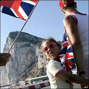 An estimated 12,000 residents linked arms around the rock. Here a young Gibraltarian joins in the celebration of 300 years of British rule