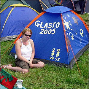 ![]() | Viv Hobbs Viv Hobbs, 21, from Leicester, found out a week ago she had won tickets in a competition. "We had bought tickets for Leeds already but couldn't afford to come to Glastonbury too, so entered lots of competitions. "I can't believe how big it is. When you see it on TV, you don't put into perspective what it�s really like. It's just crazy." |