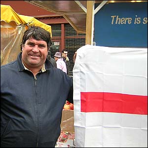![]() | Flagging up Barry Edwick, a market stall owner on Portobello Road, Notting Hill, said he flew the England flag throughout the year. "I think it's an outrage that St George's Day isn't a public holiday," he said. "If you look up and down this market there is one other flag flying, there should be flags everywhere." |