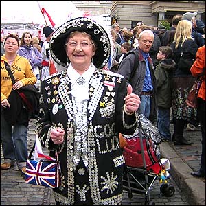 ![]() | Pearly queen Joan MacDonald, 75, calls herself the Pearly Queen Mum of Hackney. She said St George's Day was a very special day for her. "Not enough is being done to mark such a special day," she said. "It would be fantastic if it was a public holiday but I can't see it happening." |