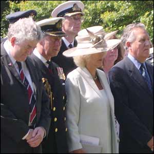 ![]() | Dignitaries First Minister Rhodri Morgan, Prince Charles, the Duchess of Cornwall and Welsh Secretary Peter Hain sat in the front row for the service, during which Prince Charles laid a commemorative wreath at the altar. |