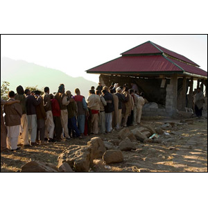 The crucial issue for remote areas is access to emergency supplies. This is a queue for the distribution of emergency aid in Bani Minhasa.
