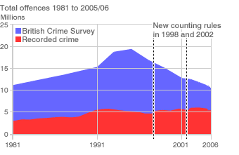 Burglary and vehicle theft have dropped notably, but violence levels have fallen more slowly. Recorded crime trends are less clear because of changes to counting rules in recent years.