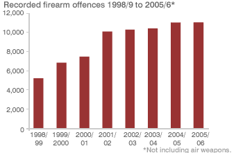 Just under 11,000 firearms offences were recorded by police in 2005/6 - virtually the same as the previous year.