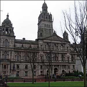 Few council staff broke the picket line at Glasgow's City Chambers.