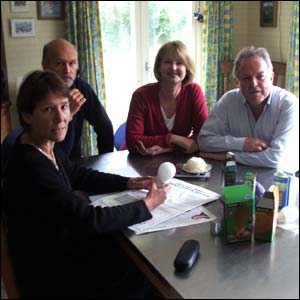 Liz Reason, Lars Larsen, Liz Leffman and Mike Flanagan discuss plans for a "Light Bulb Library".