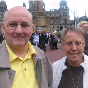 ![]() | 'One Scotland' Henry Currie, 62, and his wife Sheila, 63, travelled to the rally from their home in Irvine. Henry said: "It's a minority of people committing these acts and atrocities and we can't blame the Asian community. We are one Scotland." Sheila added: "I hope things like this will bring us all closer together as a community and city." |