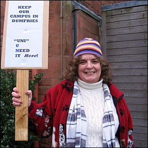 ![]() | 'Lost without campus' Jackie Grieve, doing health pathway studies part-time, said there should more investment in the region not less. "I am here to protest because Dumfries and Galloway needs a university. "I feel we will be lost without our campus here. "Dumfries and Galloway needs more developments and more people to come into the area." |