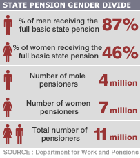 The state pension is paid to women at 60 and men at 65 and is based on National Insurance (NI) contributions. The full basic state pension is worth �82.05 for a single person and �131.20 for a couple from 6 April 2005. Many women lack enough contributions to benefit from the current pensions system. Only 46% receive the full state pension. The Liberal Democrats want a citizens' pension, based on residency, rather than contributions.
