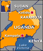 Karamoja has been unstable for years because of the large number of arms held by the area's nomadic tribesmen. For years, Karimojong cattle rustlers have carried out bloody raids on each other and against neighbouring tribes. Last year, Ugandan President Yoweri Museveni launched a programme to disarm the Karimojong. The deadline for voluntary disarmament expired in February and the army is currently disarming the tribesmen by force. | See also: Top Africa stories now: Links to more Africa stories are at the foot of the page. | ||||||