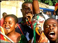 A heavy-set roasted-plantain vendor, leaping up and down with amazing ease, screamed: "Ghana ye ye buei", which translates as, "Ghana, we're great!"