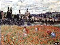 The two recovered paintings are Monet's Poppies near Vetheuil (1879) and van Gogh's Chestnut in Bloom (1890).