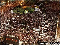 | Rabin Square was filled with thousands of protesters