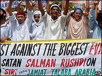 | Protests in the Pakistani city of Quetta against Rushdie's award