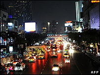 Towns and cities around the world are turning out the lights for an hour to highlight the threat of climate change. Sydney was the first major city to begin "Earth Hour", when at 2000 (0900 GMT), lights went out on landmarks like the Opera House and Harbour Bridge. Some major Bangkok shopping malls were later plunged into darkness, while street lights in Manila turned off. Toronto, Chicago, San Francisco and Dublin were among 27 cities due to follow suit at 2000 local time. Critics have dismissed the event as a gimmick that will have little effect. Australians marked Earth Hour by holding candle-lit beach parties, dinners and poker games, while traditional Aboriginal torchlight performances were also held. And in New Zealand, thousands of homes and more than 100 business in Christchurch turned out the lights. WWF Thailand said the switch-off in Bangkok saved 73.34 megawatts of electricity, which would have produced 45.8 tonnes of carbon dioxide. Public pressure The initiative began in Sydney last year when an estimated two million residents took part, cutting energy usage by more than 10% for the hour.  | Major Bangkok shopping malls turned out the lights