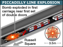 There are still bodies at the two other Tube bomb sites - at Aldgate station and Edgware Road - but it is thought the King's Cross site is the only one where bodies remain on the train.
