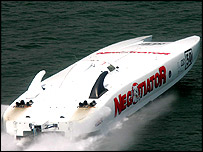 | NEGOTIATOR FACT FILE Hull: Carbon fibre composite catamaran Length: 13.5m Beam: 3.5m Weight: 4,650kg Engines: Lamborghini-Skema, 2 x 8.2litre, V 12 Power: 920 hp per engine @ 8200 RPM |