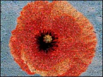 A giant poppy picture made up of thousands of photographs of people helped by the Royal British Legion is going on display in Manchester. The People's Poppy, a 4.5m sq montage, features photographs of 3,500 people aided by the charity.