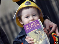 | Jack Henderson, three, with one of the signed Harry Potter books