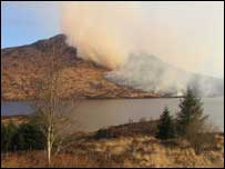 The blaze is understood to have been started accidentally on Sunday by two people camping in the area.