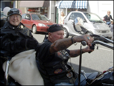 A great-grandmother who still works every day has celebrated her 102nd birthday with a surprise outing on a motorbike, and then a Ferrari supercar. Connie Brown MBE, from Pembrokeshire, gets up every morning to prepare food for the family run chip shop. While she was still up early on her birthday, she was greeted by well-wishers and whisked off round Pembroke. Dressed in a leather motorcycle jacket and a black helmet, she said: "Everyone should try it". "It was a beautiful day, I will never forget this day," she said after returning from her first trip on the back of a three-wheeled chopper bike. But her thrills did not end there. After the bike ride, she was ushered into a red Ferrari sports car for another spin around the town. "I never dreamt of anything like this this," she said. "I'll get back to the fish and chips tomorrow, now."  | Connie Brown celebrates 102 in style