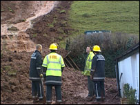 Firefighters said the house was under threat from a further mudslide.