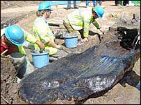 It was found six weeks ago less than a metre below the surface in a marshy area of land, but archaeologists have only just had it confirmed what the find was. Work was stopped immediately.