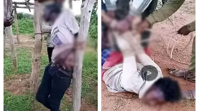 Gochi dargaggoota kana lamaan irratti raawatame suuraadhaan akka mul’atutti dargaggeessa tokko harka isaa lamaan erga duubatti hidhameen booda mukatti hidhamee kan jiruufi isa tokko ammoo garaadhaan lafarra ciibsuun harkasaa lamaan duubatti hidhanii yoo irra ejjetan agarsiisa.