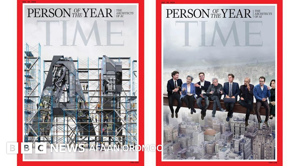 Time Magazine barruusaa nama cimaa bara kanaa filate itti beeksise irratti fuula tokkorratti qubee AI jedhu kan hojettootni itti marsan maxxanse. Fuula biraa irratti ammoo hogganoota teeknoolojii kana duuba jiran kaahe.