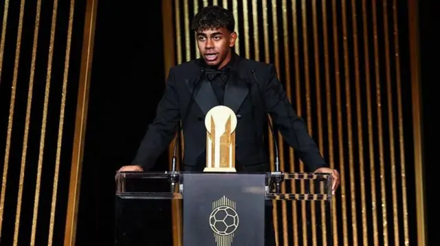 Laamiin Yamaal reefu ganna 18 guuta; barana badhaasa Ballon d'Or fudhateera osoo ta'ee, seenaa keessatti taphataa umuriin xiqqaa badhaasa guddaa kana fudhate jedhamee galmaa'a ture.