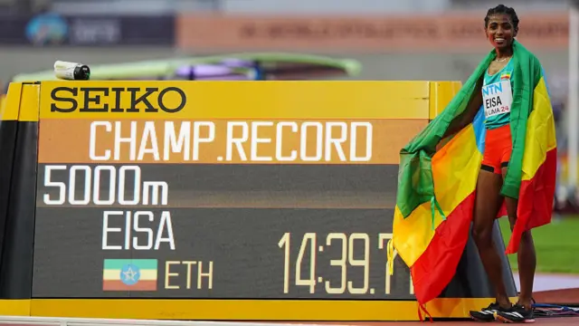 Atileet Madiinaa Iisaa Shaampiyoonaa Atileetiksii Addunyaa ganna 20 gadiirratti 5,000m’n riikardii Shaampiyoonaa Atileet Ganzabee Dibaabaan galmaa’e cabsuun warqii injifatte.