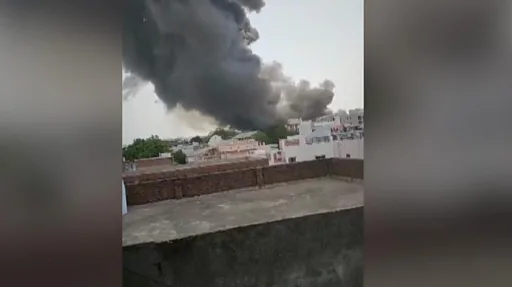Viidiyoowwan mirkanaa'an giddu-galeessa Ahmedabaad irraa argaman akka agarsiisanitti aarri gur'aachu samiitti ol ba'u bakka sanarraa ni mul'ata.