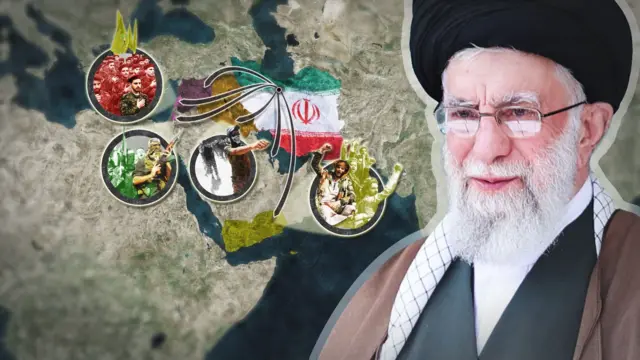 Iraan Baha Giddugaleessaa keessatti dhiibbaa uumuun olaantummaashee mirkaneeffachuuf karaan isheen ittiin deemaa jirtu hidhattoota kanneen akka Hamaas Gaazaa, Hezboollaa Lebaanos fi Huutii Yaman ofitti qabuudhaani.