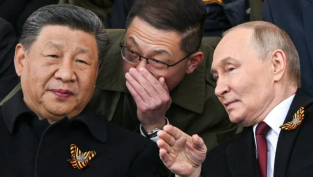 Fakkeenyaaf, guyyaa qophii yaadannoo xumura Waraana Addunyaa Lammaffaa gaafa Caamsaa 8, Moskootti kabajame irratti, yeroo waraanni biyyoota lamaanii waliin agarsiisa raawwataa turanitti, Shiii Jinpiing akka michuu cimaatti gama mirga Puutin dhaabachuun mul'atan.