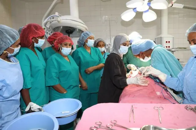Hospitaalli Kolleejjii Meedikaalaa Miliiniyeem Qulqulluu Paawuloositti gareen ogeeyyii fayyaa dubartoota qofa hirmaachise tokko baatii kana keessa waldhaansa baqaqsanii yaaluu hojjate.