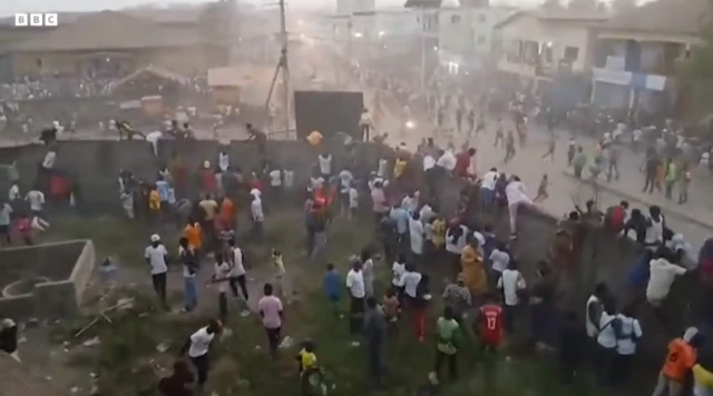 Suuraa fi viidiyoowwan miidiyaalee hawaasaa gubbaa qoodamaniifi BBC'n mirkaneeffachuu danda'e istaadiyoomiin alatti jeequmsi guddaan akka ture, namootni gariin keenyan yoo yaabaniifi namoota lafa kufanii jiranis agarsiisa. Namoota kana keessaa gariin daa'immani.
