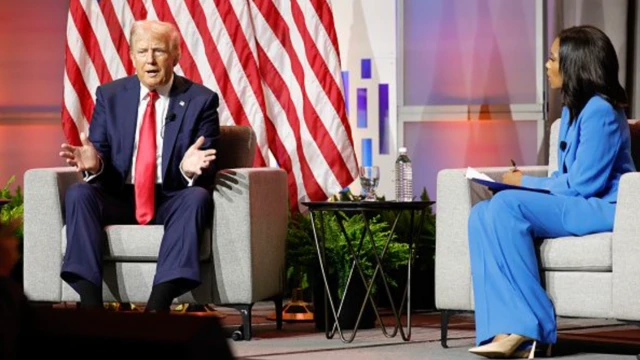 Doonaald Tiraamp waltajjii gaazexeessitoonni guraachonni irratti walga'an irratti wayita haasaa taasisu sanyummaa Kamaalaa Hariis irratti gaaffii kaase.