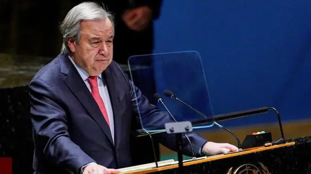 Dureen Dhaabbata Mootummoota Gamtoomanii (UN) Antooniyoo Gutareez Raashiyaa Yukireen weeraruu isheetin "duudhaa addunyaan waliin qabdu sarbite" jechuun balaaleffatan.