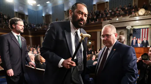 Bakka bu'aan paartii Dimookiraatikii Al Giriin yeroo Donaald Tiraamp Kongirasii keessa haasaa taasisan waan addaan kutaniif chaambarii keessaa baafaman.