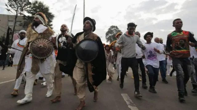 Kabaja yaadannoo Ayyaana Injifannoo Aduwaa 127ffaa magaalaa Finfinneetti Kamisa Bitooteessa 2, 2023 kabajame irratti lubbuun nama tokko darbuu BBC'n maatiirraa odeeffate.