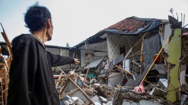 Hermaan Suhermaan, hogganaan bulchiinsa magaalaa Cianjur, namoonnii miidhaan irra qaqabee baayyeen isaanii sababii jijjiggaan gamoowwan irratti kufeen danqamuutiin caba lafeetiif saaxilamaniiru.