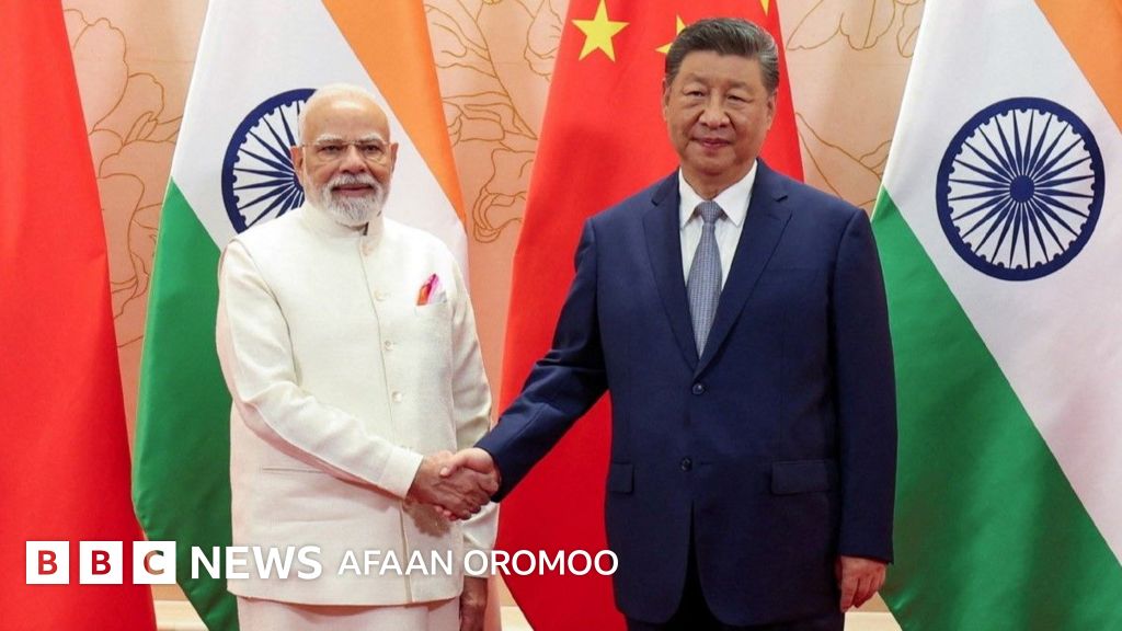 Pirezdantiin Chaayinaa Shii Jiinping fi Ministirri Mummee Indiyaa Naareendiraa Moodiin, magaalaa buufata doonii Tiyaanjinitti Dhaabbata Tumsa Shaangaayii (SCO) waliin wal arganiiru. Moodiin waggoota torba keessatti yeroo jalqabaatiif Chaayinaa dowwatan.