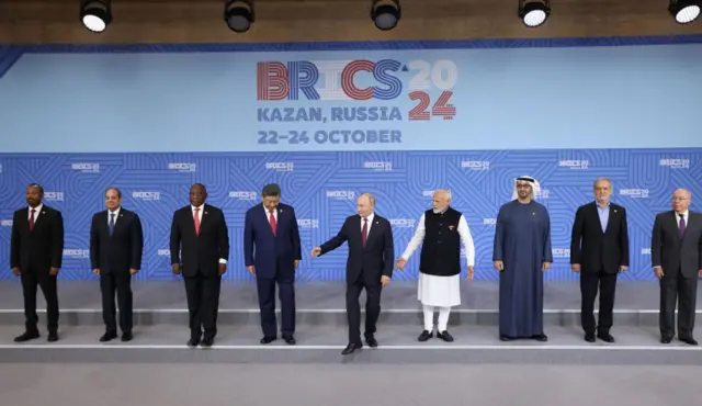Biraazil, Raashiyaa, Hindii, Chaayinaa fi Afrikaa Kibbaa hundessitoota BRICS yoo ta'an,Masrii, Itoophiyaa, Iraan, Sa’uudii Arabiyaa fi Emireetota Araba Gamtoomanii ifatti gamtichaatti makamaniiru. Biyyotni gara 40 ta’anis BRICStti makamuuf fedhii agarsiisaniiru.