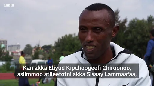 Waggaa shan dura Olompikii Riyoo irratti Kipchoogeen yoo injifatu Fayyisaa Leellisaan lammaffaa bahuun mallattoo mormii agarsiisee ijoo dubbii ta'e.