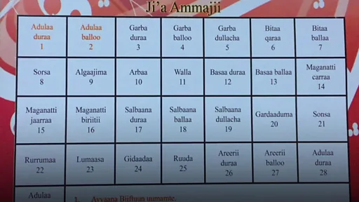 - Ji'i ammajii immoo ho'a aduutiin beekama. Ji'a kana keessa ciminni ho'a aduu baay'ee nama yaaddessa. Boorannis "Amajii aduu yaadi" jedha.