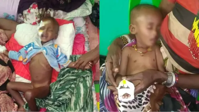 Hanqina nyaataa sababa bonaan walqabatee mudateenis, Godina Booranaa Hospitaala Meeggaatti daa'imman yaala argachaa jiraachuufi lubbuun daa'ima tokkoo dabruu BBCn odeeffateera.
